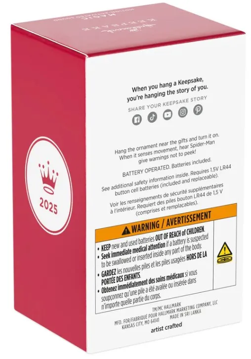 2025 Hallmark Keepsake Ornament - Marvel Spider-Man Peekbuster with Motion-Activated Sound