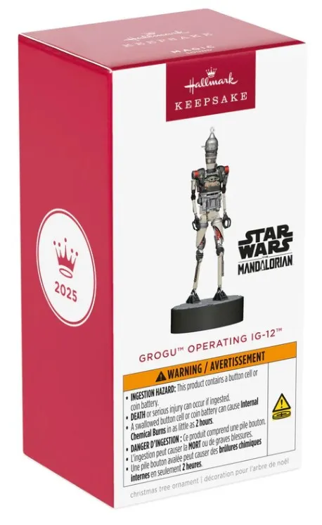 2025 Hallmark Keepsake Ornament - Star Wars The Mandalorian Grogu Operating IG-12 with Sound