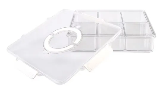 Alfresco Lane 6 Compartment Square Grazing Box with Carry Handles - Clear
