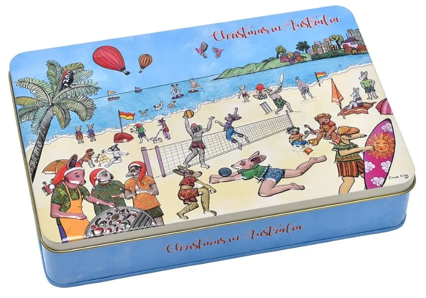 Banksia Red Shortbread Biscuit Tin - Christmas in Australia