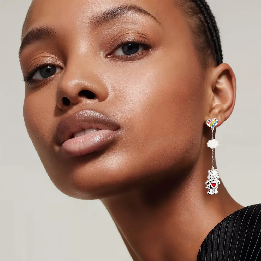 Couture Kingdom - Care Bears - Tenderheart Bear Drop Earrings Silver
