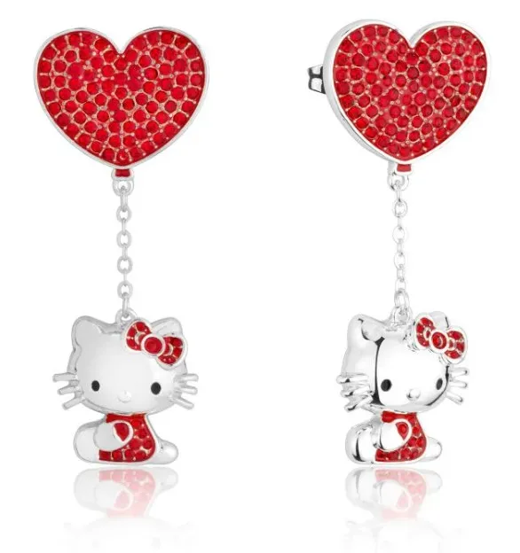 Couture Kingdom - Sanrio - Hello Kitty Crystal Heart Drop Earrings Silver