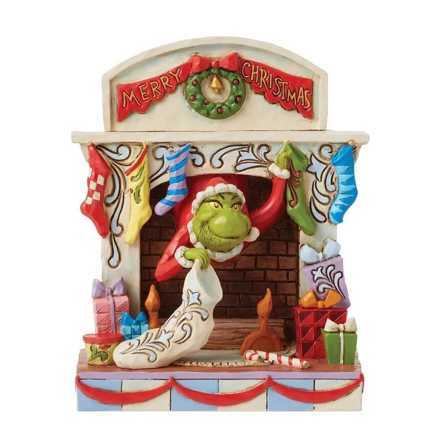 DAMAGED BOX - Dr Seuss The Grinch by Jim Shore - Grinch Peeking out of Fireplace