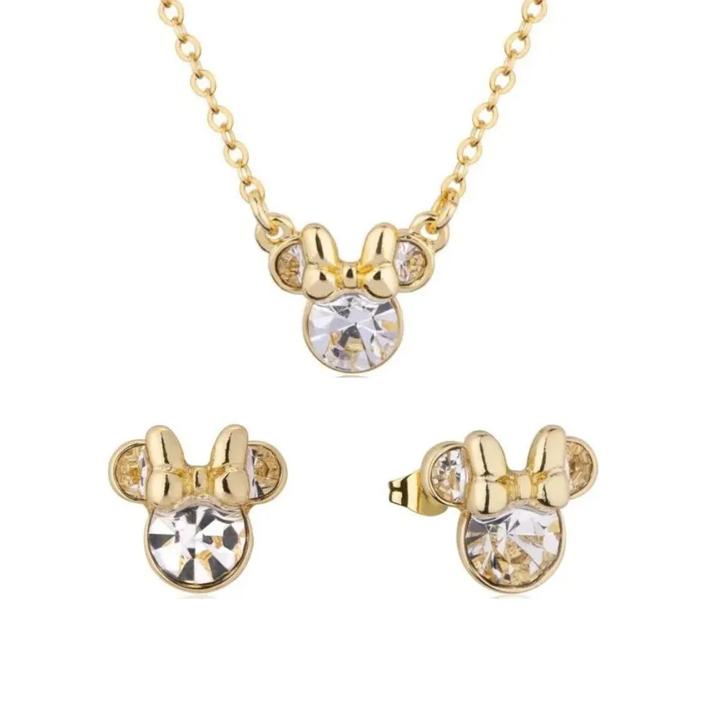 Disney Couture Kingdom April Birthstone Minnie Necklace & Earrings Bundle Gold
