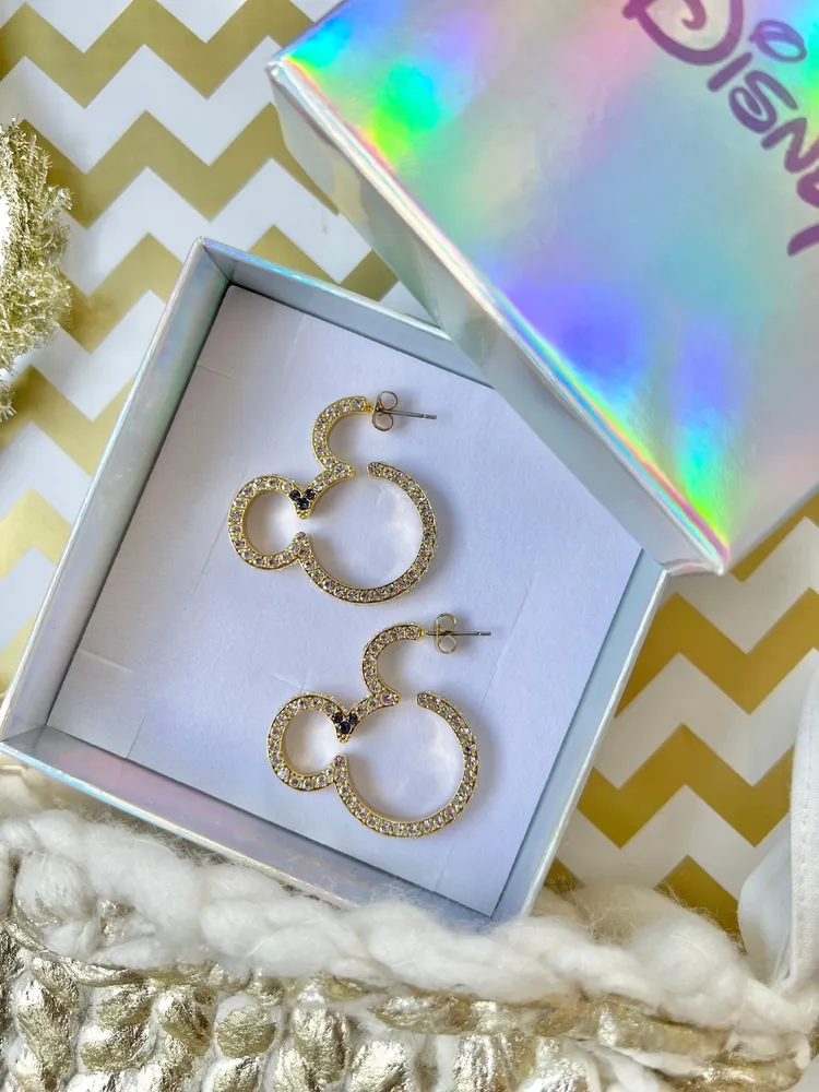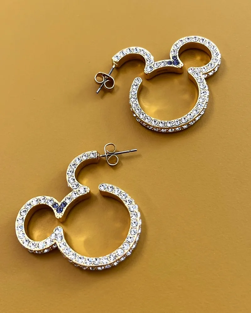 Disney Couture Kingdom - D100 - Mickey Mouse Crystal Hoop Earrings Yellow Gold