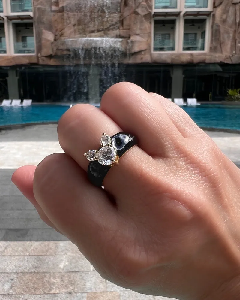 Disney Couture Kingdom - D100 - Mickey Mouse CZ Black Enamel Ring Size 7 Yellow Gold