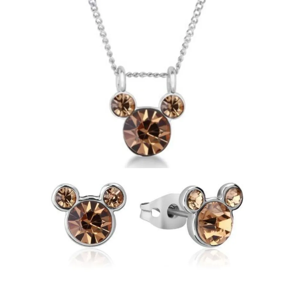 Disney Couture Kingdom November Birthstone Mickey Necklace & Earrings Bundle Silver