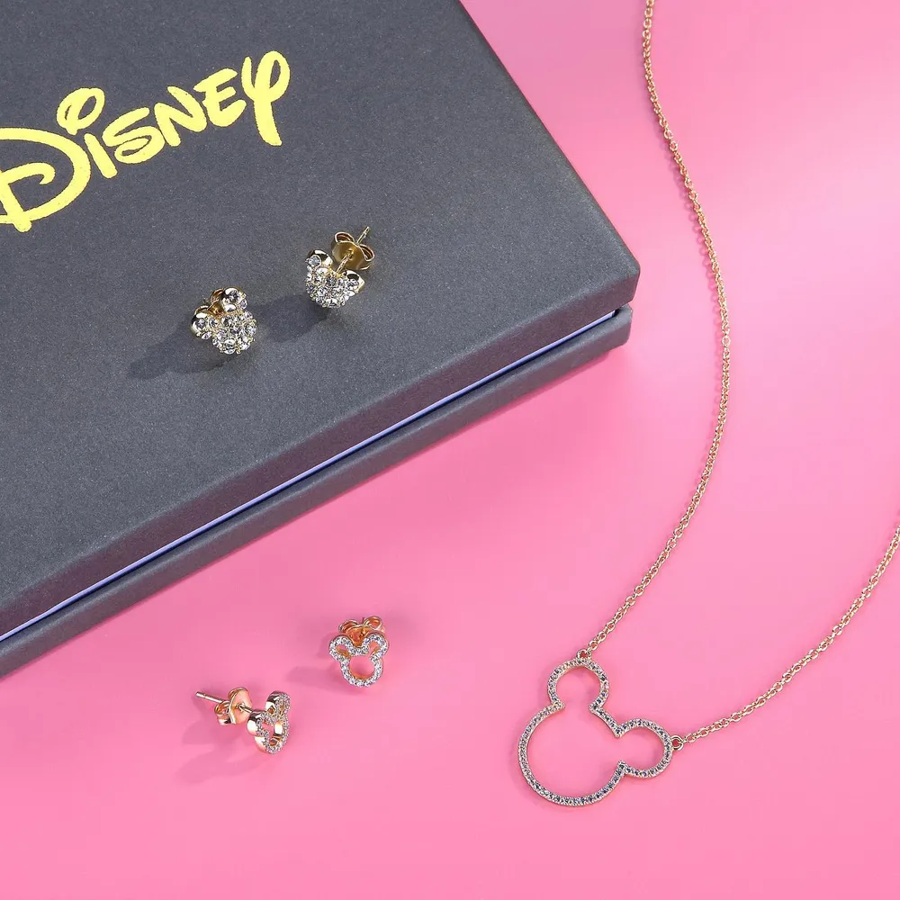 Disney Couture Kingdom Precious Metal - Mickey Mouse - Crystal Outline Stud Earrings Yellow Gold