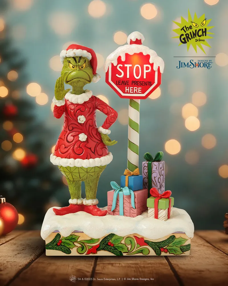 Dr Seuss The Grinch by Jim Shore - Grinch with LED Stop Sign