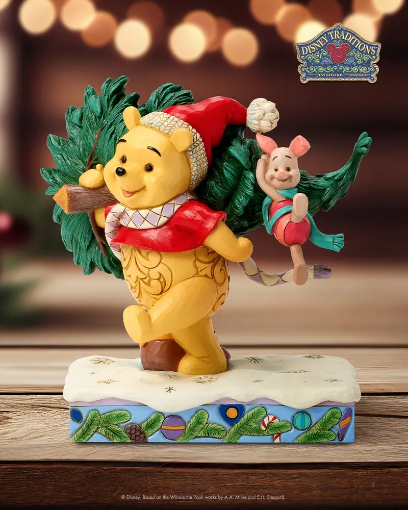 Jim Shore Disney Traditions - Winnie the Pooh Christmas - Pooh with Tree - A Tree For Two
