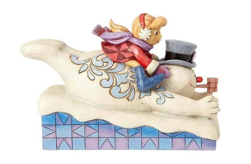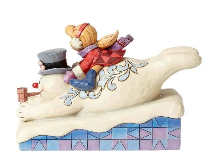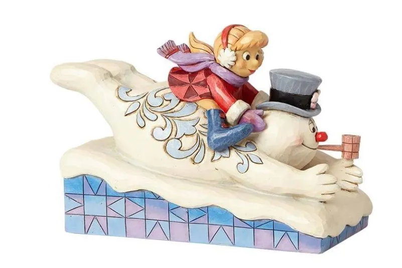 Jim Shore Frosty The Snowman Collection - Frosty and Karen Sledding - Fastest Belly-Whopper in the W