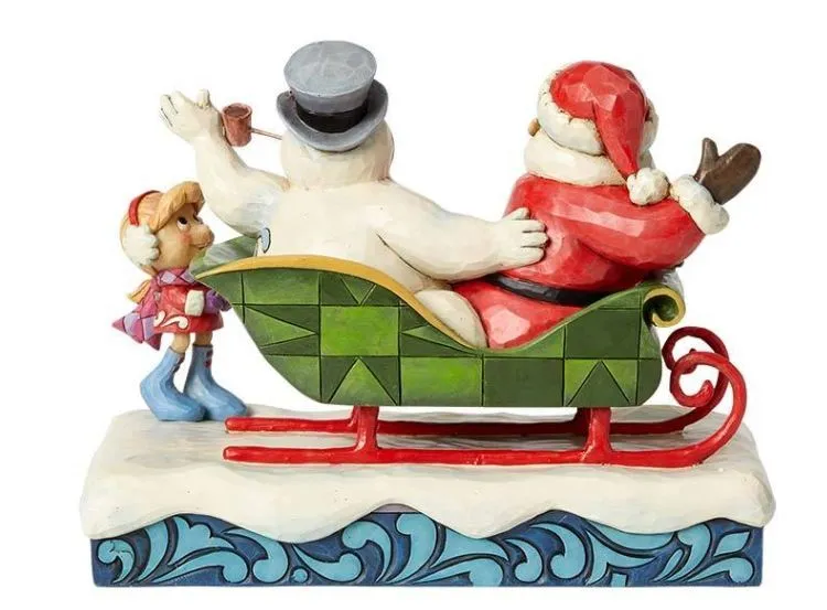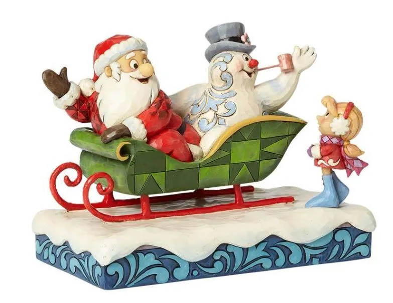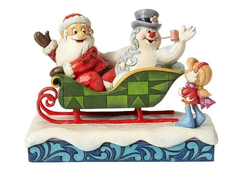 Jim Shore Frosty The Snowman Collection - Santa Frosty and Karen in Sleigh - I'll Be back on Christm