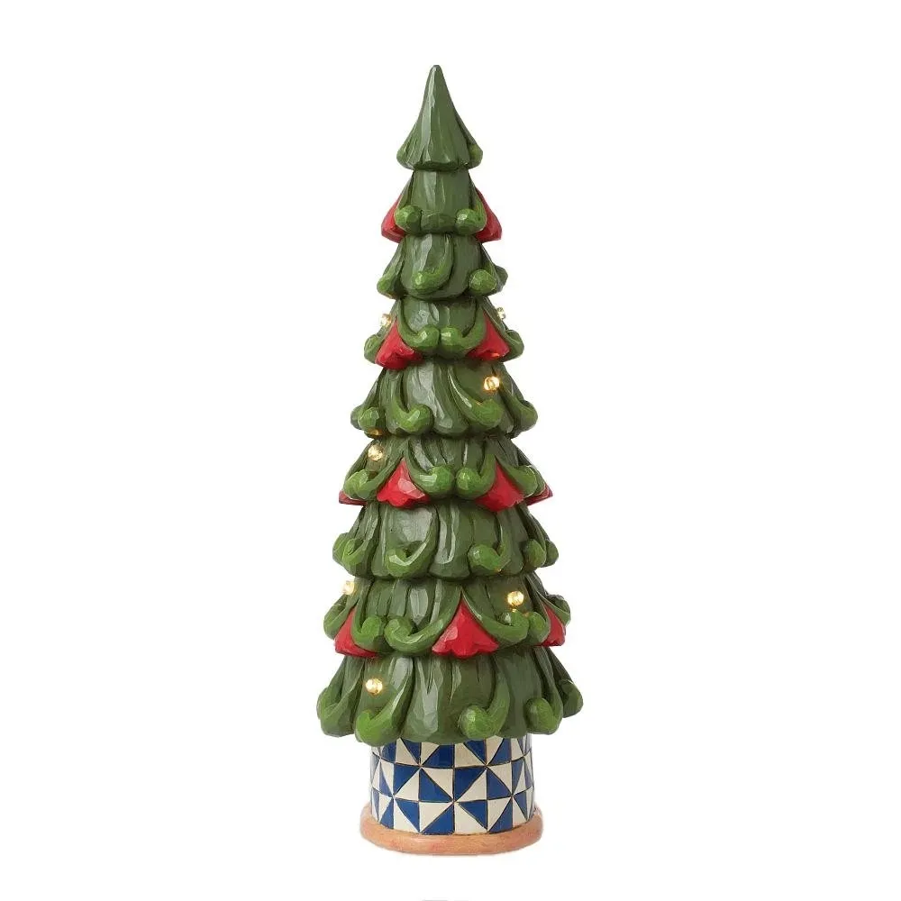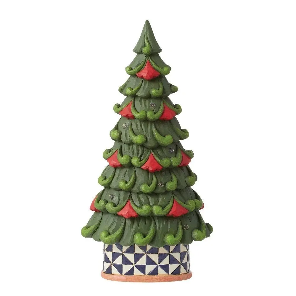 This simple Jim Shore Christmas tree adds holiday spirit to your home with ease. The tree's base is patterned with a Windmill patchwork design while colorful tree leaves mimic rosemaling.