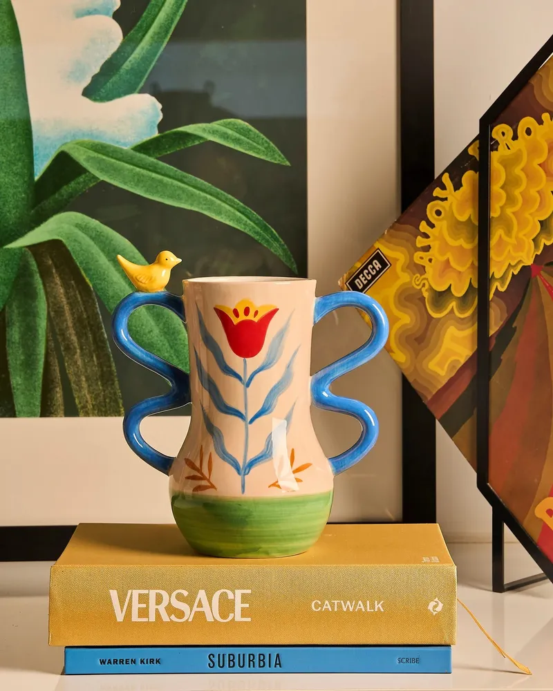 La La Land Beyond Retro Folk - Stoneware Hand Painted Vase