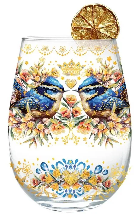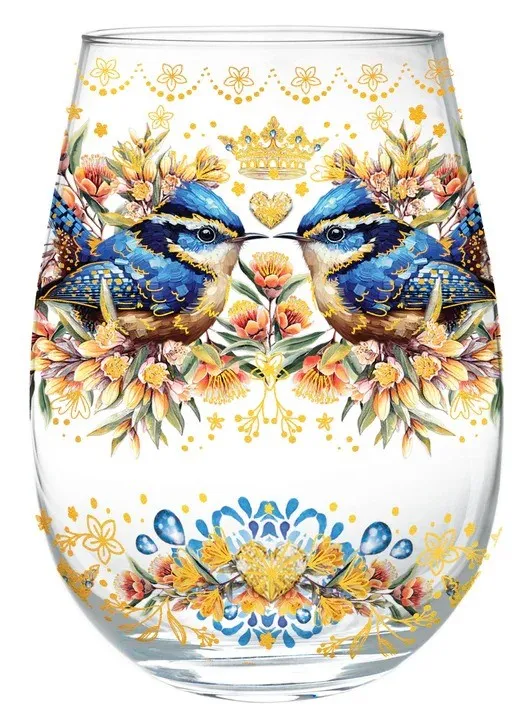 Lisa Pollock - Golden Glamour Stemless Glass Royal Wrens