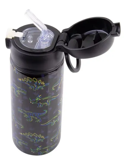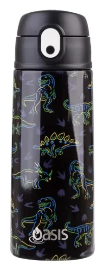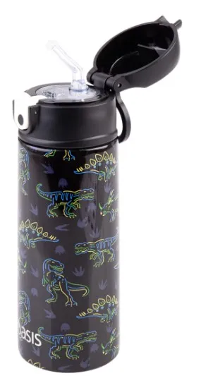 Oasis Double Wall Insulated Sipper Straw Kid's Drink Bottle - 550ml Neon Dinosaurs