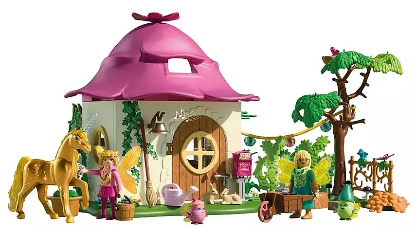 Deep in the heart of the fairy forest, a whimsical world unfolds! Inside the cozy PLAYMOBIL Fairy Home, magical details bring enchanting stories to life from a leaf-shaped bed and pin-on rose to a pretty flower wreath and fluttering wings. With the help of the playful Joylings, fairies tend to their shimmering Golden Unicorn using charming care accessories. Flowers bloom, butterflies dance, and even the tiny mailbox holds surprises! This richly detailed PLAYMOBIL playset sparks endless imaginative play, inviting children to explore the magic of nature, friendship, and fantasy.