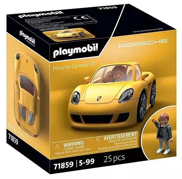 The PLAYMOBIL X Porsche Carrera GT (71859) combines Porsche's sporty design with unmistakable PLAYMOBIL quality. This officially licensed model captivates with its sleek lines, removable roof, and included figure that fits perfectly inside. Ideal for children aged 5 and up, or as a collectible for adults. The PLAYMOBIL Porsche brings dynamism to your shelf or your next imaginary racetrack! With the PLAYMOBIL X Porsche Carrera GT (71859), a supercar comes to your PLAYMOBIL world. The striking bodywork, realistic air intakes, and sporty lines make this Porsche model a gem for children and collectors alike. The removable roof reveals the interior and the included figure fits perfectly. The PLAYMOBIL Porsche stands out for its precise manufacturing, durable materials, and solid appearance. With rolling wheels and the classic Porsche shape, this model is ideal for both imaginative racing and proud display. The PLAYMOBIL Collectors Series presents the 71859, a true gem for Porsche fans. Whether displayed alone or alongside classics like the PLAYMOBIL Porsche 911, this model makes a statement in any collection. Discover it and expand your personal fleet of supercars!