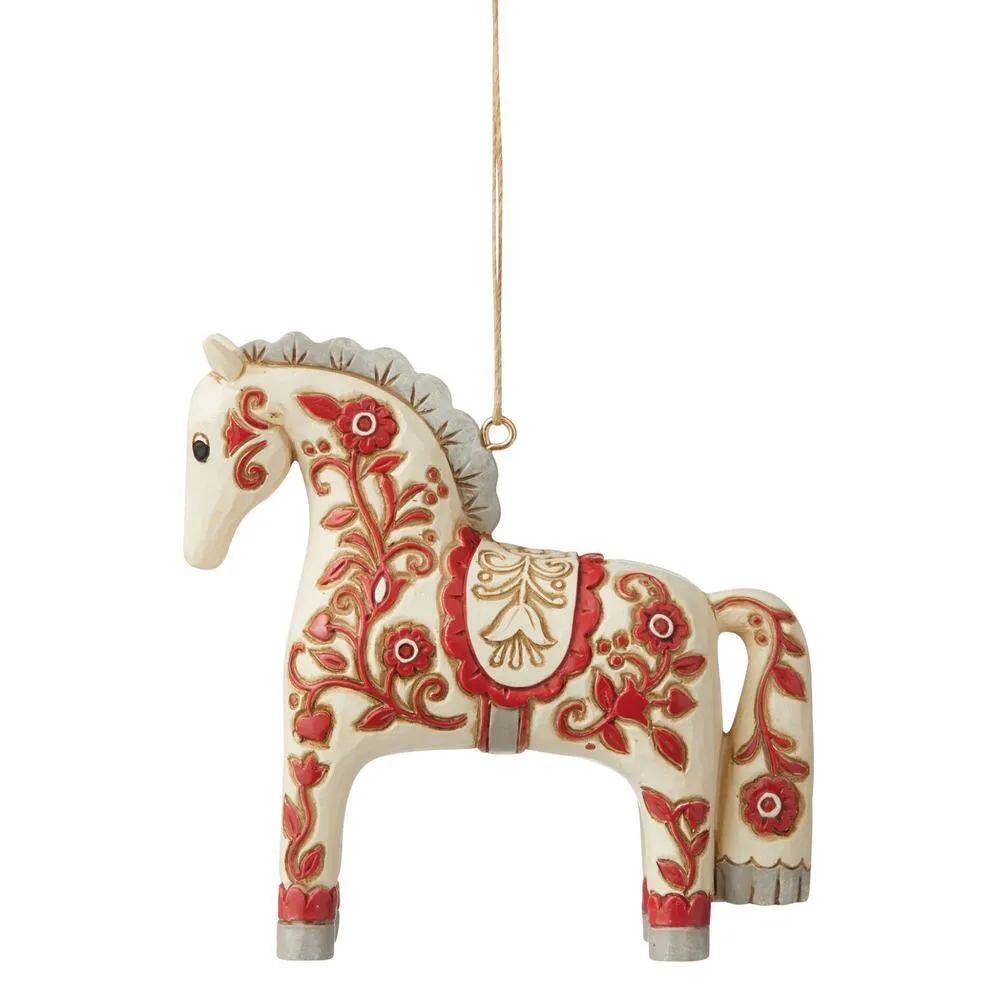 Inspired by Scandinavian folk art traditions, this Jim Shore Nordic Dala Horse celebrates Noel in the North. Fantastically painted in red and white hues, this intricately patterned horse captures attentions and fosters holiday spirit with culture.