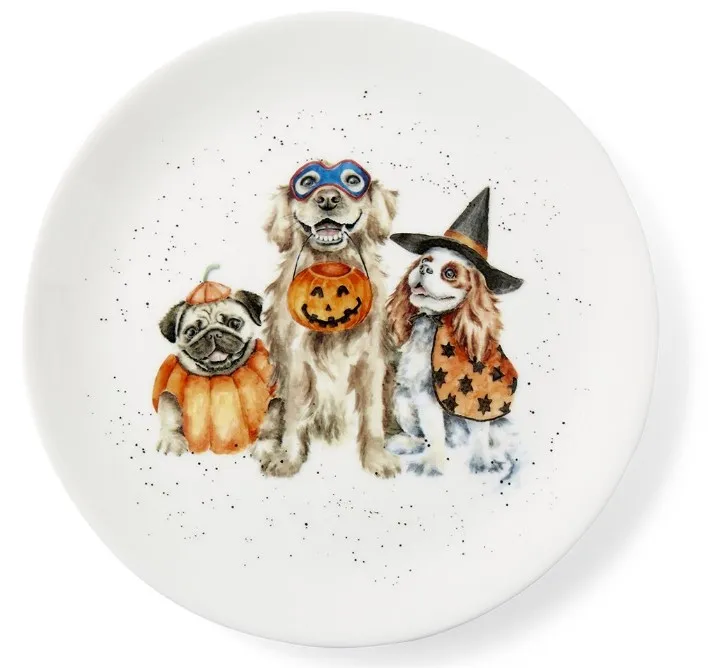 Royal Worcester Wrendale Coupe Plate - 'Trick or Treat' Halloween Dogs