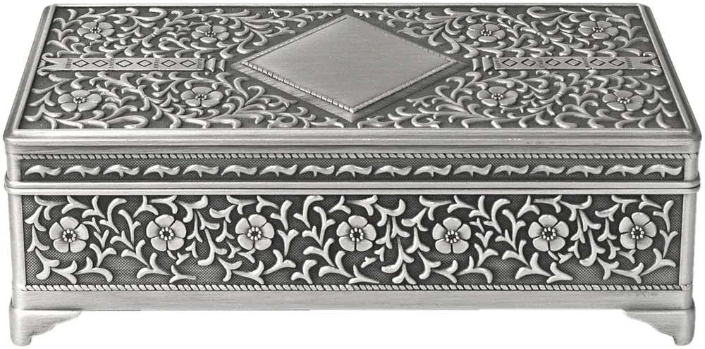 Russell Collection - Pewter Finish Diamante Jewellery Box Large
