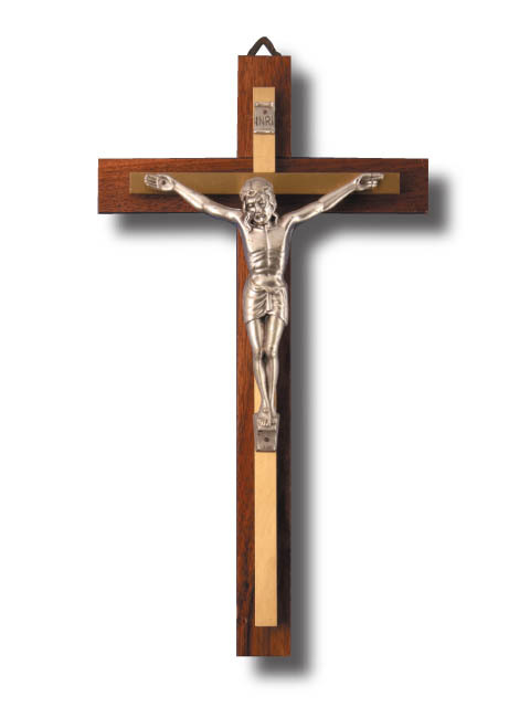 Wall Crucifix - 27cm x 14cm - Metal & Wood Finish