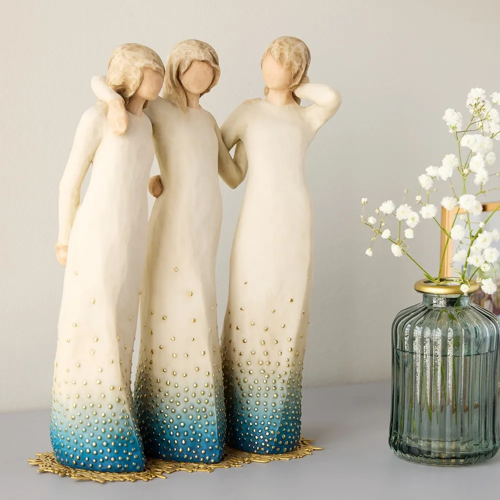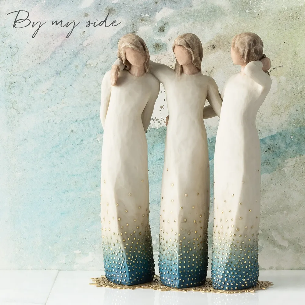 Willow Tree figurines are renowned for their unique ability to convey emotions without the use of facial features. Each piece is hand-carved and painted, ensuring that every figurine is a one-of-a-kind work of art. The By My Side figurine is particularly special, symbolising the bond between friends and family, making it a thoughtful gift for any occasion.
