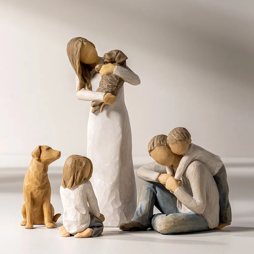 Dog and Cat figures work well with other family pieces to create Family Groupings.
